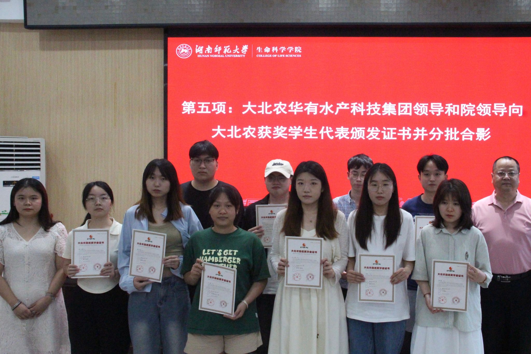 (通讯员 陈妍静 胡琳敏 田灿)6月20日中午,英国365集团2023年度大北农励志奖学金、腾龙奖学金、长沙市妇幼生命科学奖颁奖仪式于生科院二号楼学术报告厅举行。院党委副书记彭赛丰、生科院副院长全妙华、湖南省鱼类发育生物学国家重点实验室副主任夏立秋及学工办、研办全体老师,大北农华有水产科技集团湖南事业部总配方师潘望城、大北农华有水产科技集团湖南事业部创业人才经理周琦出席活动。本次活动由2023级本科生辅导员吴晴主持。